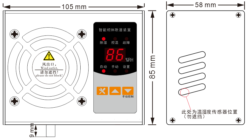 10、型號帶“T”的具有加熱功能,當(dāng)檢測到箱體環(huán)境溫度低時(shí),除濕裝置內(nèi)部的風(fēng)機(jī)和外部加熱器啟動工作。